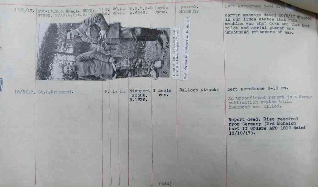 Each pilot maintained a log book recording all flights. Unfortunately it was common to omit the letter prefix from the aircraft serial, and the location of the flight, and squadron or unit the pilot belonged to, was generally not shown.