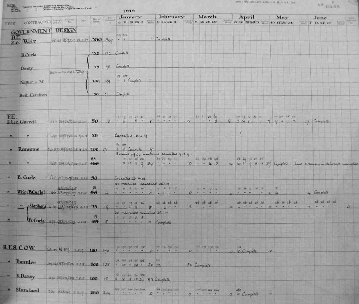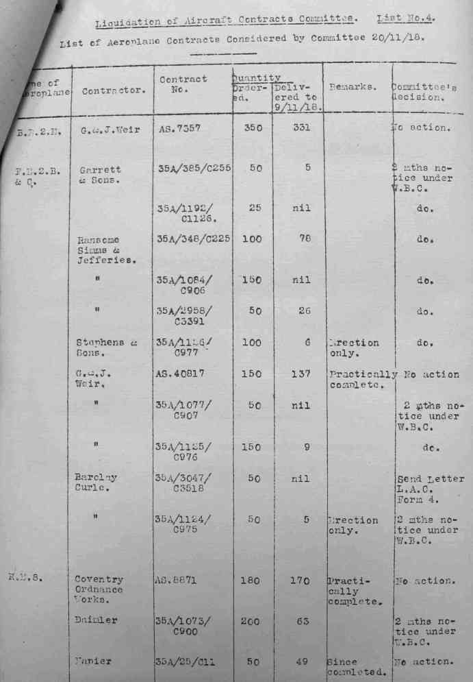An attempt was made in September 1916 to summarize all the early contracts from mid-1914 to December 1916. The analysis appears in file AIR 2/124 but contains several errors.
