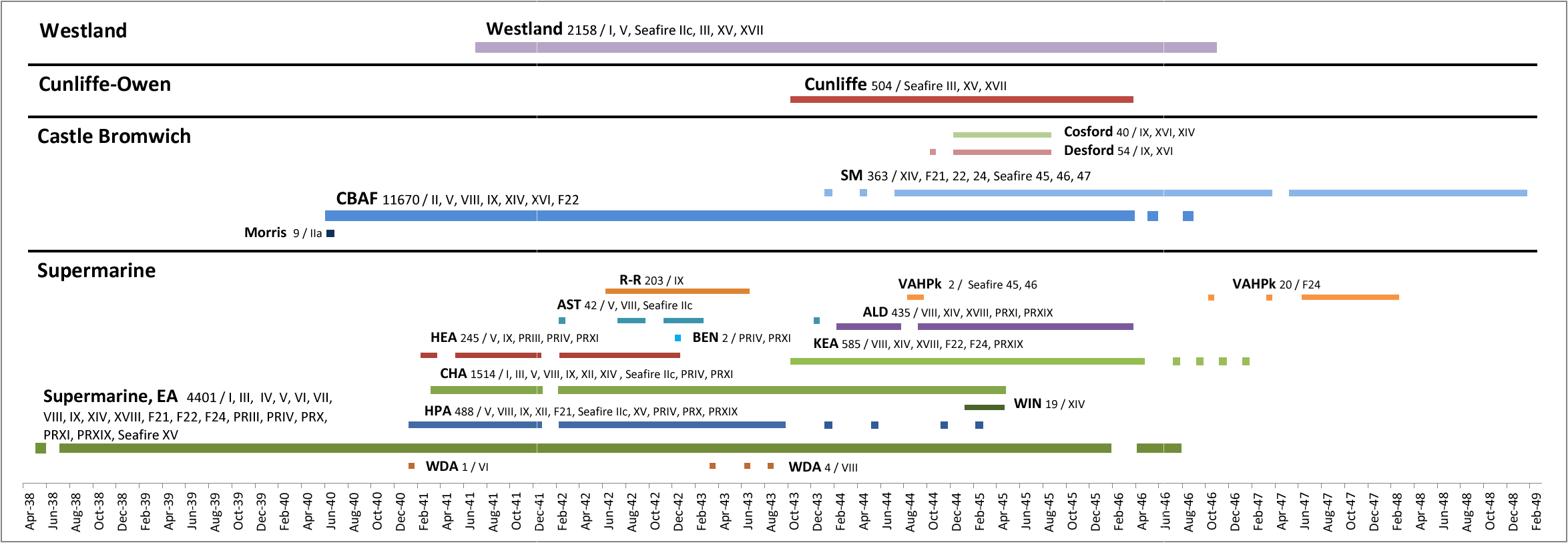 Late production by factory (SM=South Marston CBAF=Castle Bromwich)